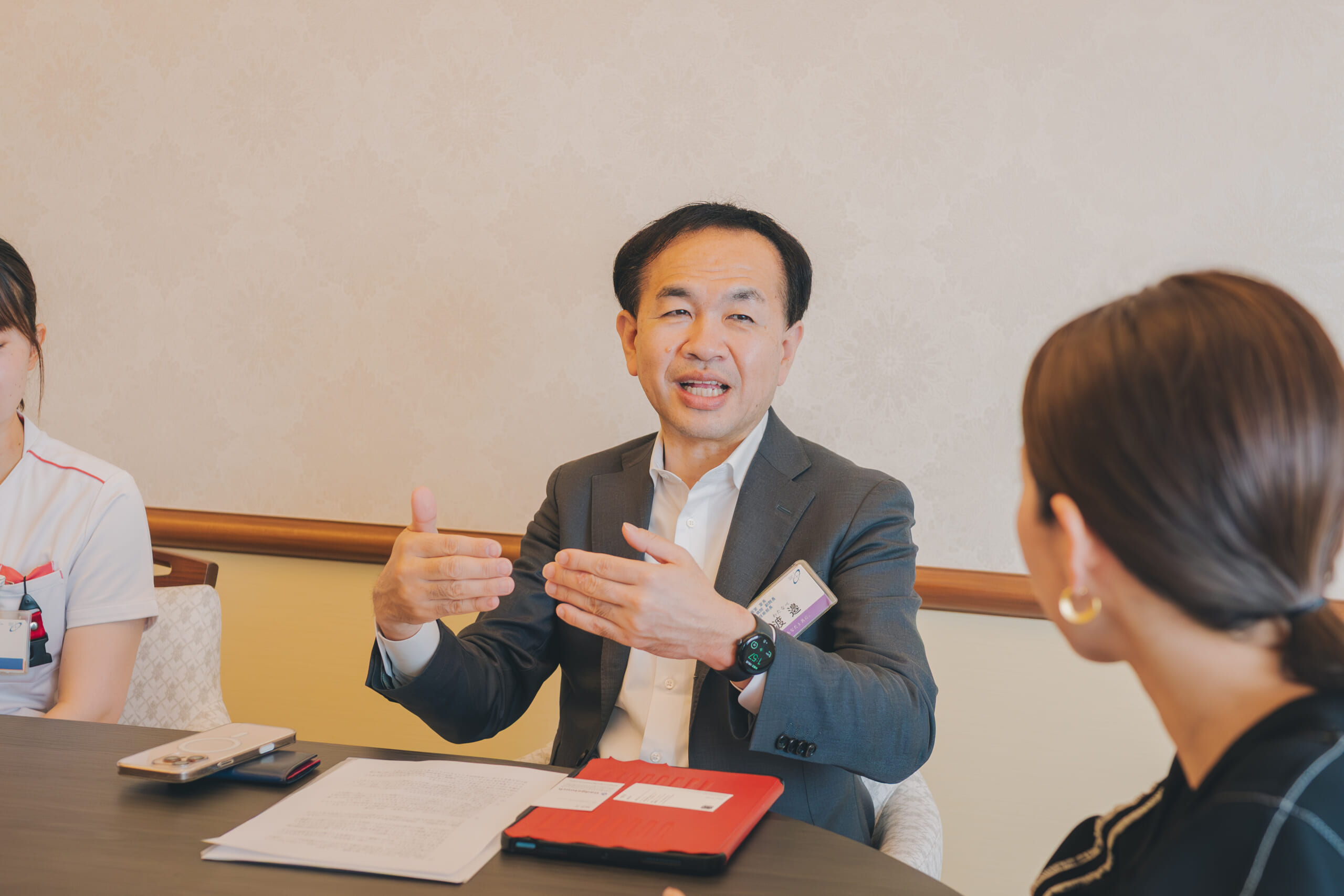 今回は、岡山中央病院副院長 経営企画室長兼診療技術部部長の渡邉伸作さま、栄養科科長の安田義博さま、栄養科リーダーの西井詩於莉さま、そして当社取締役社長の工藤萌が、医療現場における「食」の役割について語り合いました。