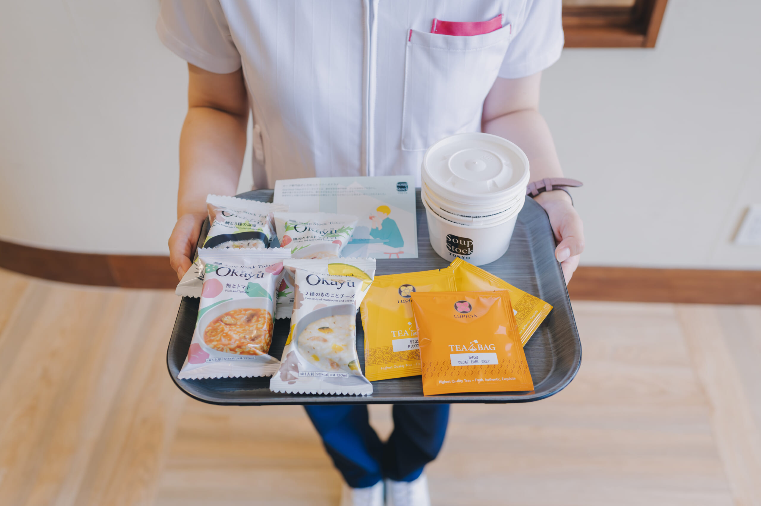 現在、産科食の他に、人間ドック食としてもSoup Stock Tokyoの冷凍スープを導入しています。これも温かいスープを提供することで、食事制限後の一食目として胃腸と心へのやさしさと安らぎを提供したいという目的のもと採用しています。また、まもなく産科のお夜食としてフリーズドライのお粥も取り入れる予定で、入院の際にはプレゼントのように包んでお渡しする計画です。(2025年7月より提供開始。)