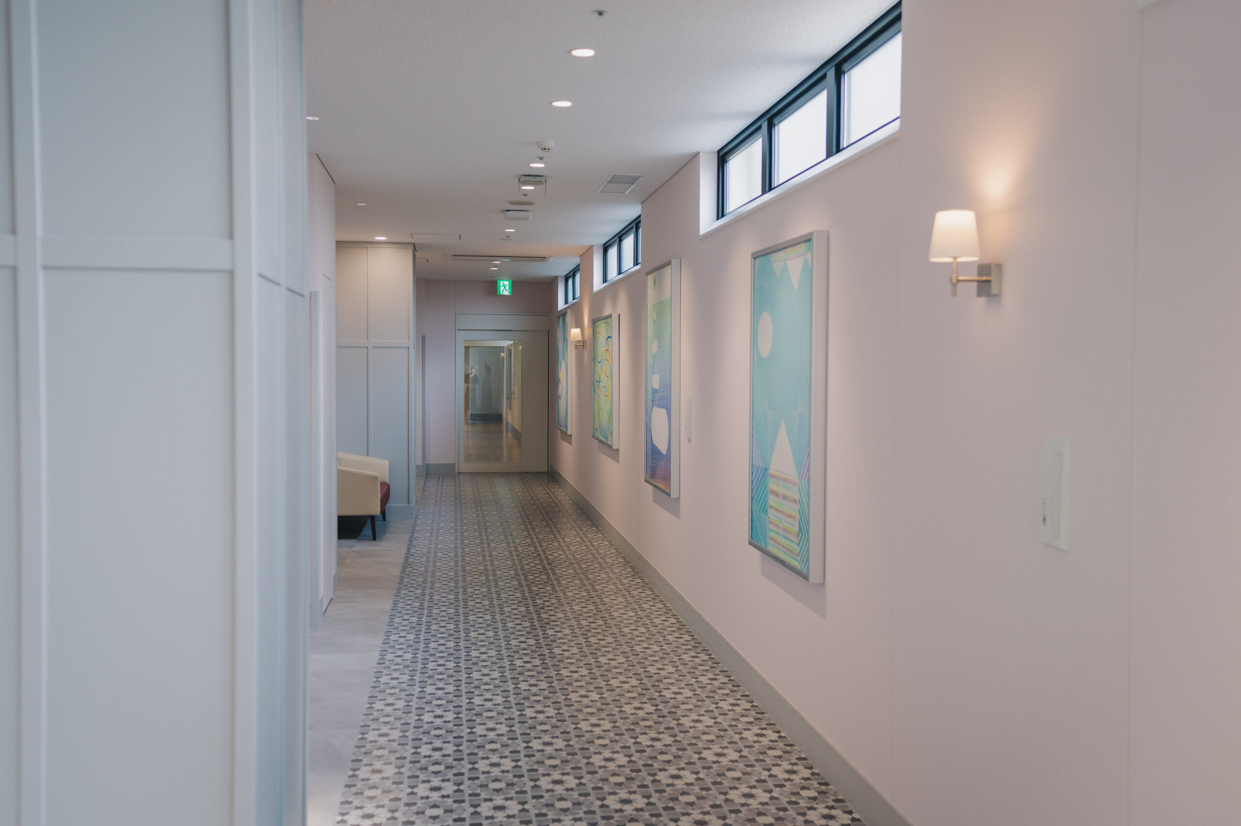 (キャプション)絵画やアートがたくさん飾られたバースセンターのLDR室前の空間