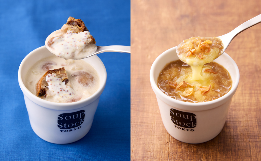 「オマール海老のビスク」と「東京ボルシチ」。Soup Stock Tokyo不動の人気メニューが4月7日から登場。